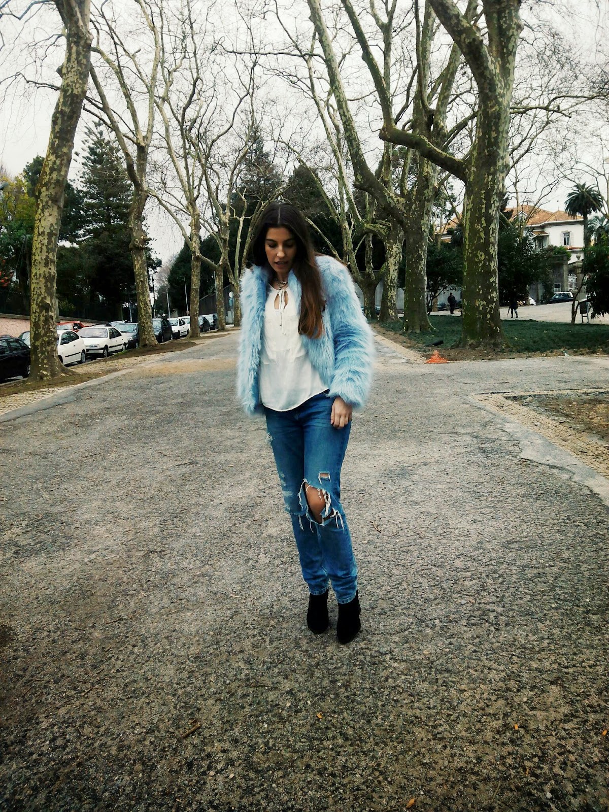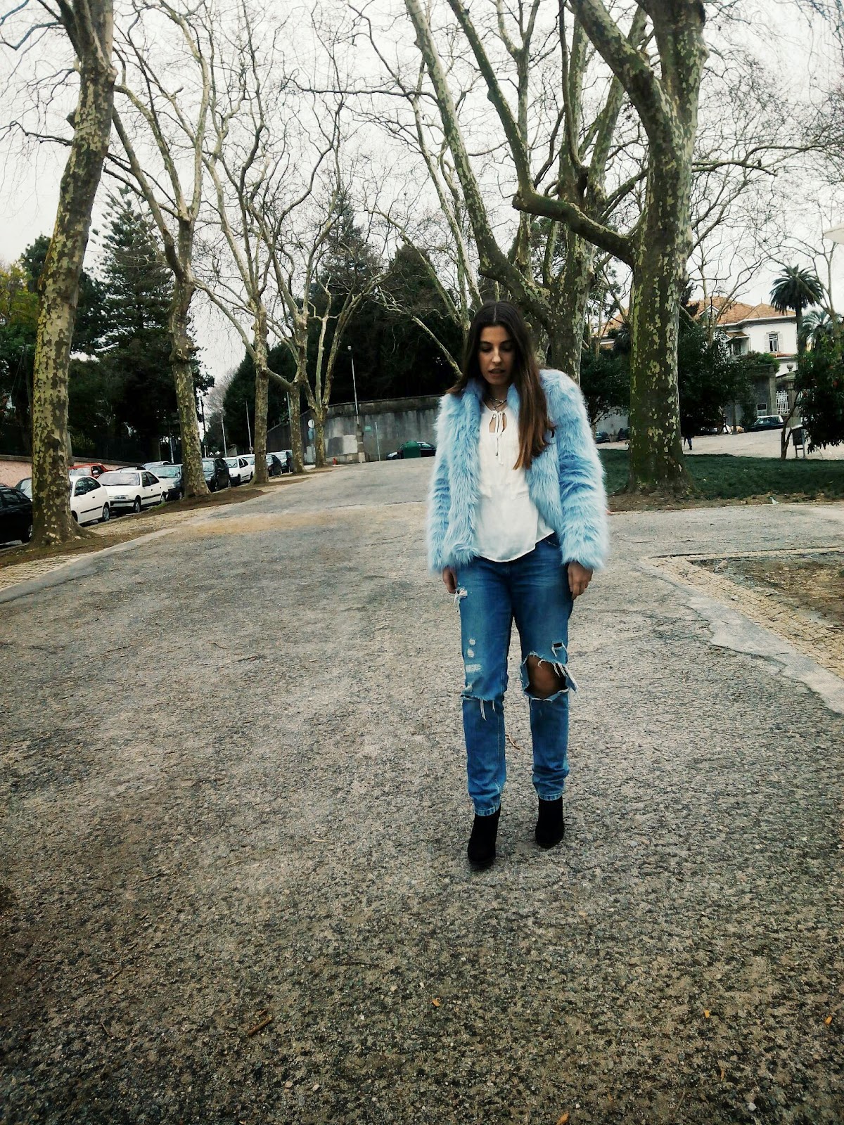 CAMISOLA- ZARA | CASACO- ZARA | CALÇAS- LEFTIES | BOTAS- STRADIVARIUS | CACHECOL- BERSHKA | CARTEIRA- ZARA | ÓCULOS DE SOL- RAY BAN